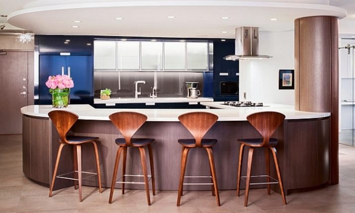 In addition to classic furniture models, the use of designer chairs with a classic soft round seat and an ornate design of the lower part, which will add extraordinary and beauty furniture, can become an actual solution for modern kitchens. Such chairs will be comfortable to use, while the furniture will harmoniously fit into any interior and become its highlight.