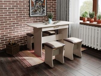 Thanks to the special design, stools save space: they can be removed under the table or put on top of each other. Guest stools can be kept on the balcony. Modern options are represented by a wide variety of shapes and colors; they fit perfectly into any interior. In addition, this furniture is easy to maintain: it is easy to wash stools from fat that can get on them during cooking. Worn seat covers can easily be replaced with new ones.