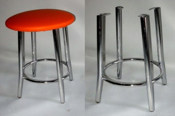 Such a base can be made of a hollow pipe, which is bent at certain angles and fastened with rivets. As a rule, felt, rubber and plastic nozzles are placed on the legs in order not to spoil the floor covering. The metal bases are durable and easy to maintain. Made of aluminum stool frame not subject to corrosion.