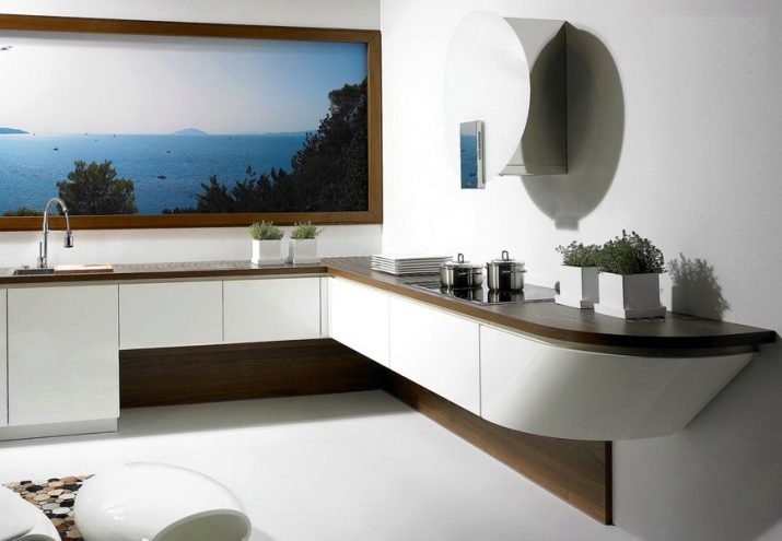 A conversation about unusual kitchens is appropriate to start with the fact that they are made not only for reasons of originality. The fact is that typical layouts and layouts may not fit into the structure of the room itself. Not to mention the fact that only in this way is it often possible to get closer to the realization of one's ideas. With a skillful approach, it will turn out to realize the most non-standard solutions. From the very beginning, you should clearly choose an expressive and multifunctional or simple and concise-looking room.