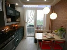 The presence of a balcony in the kitchen provides additional square meters, which are also possible to use. As a rule, balconies are additionally insulated, and anything can be done in such a room.