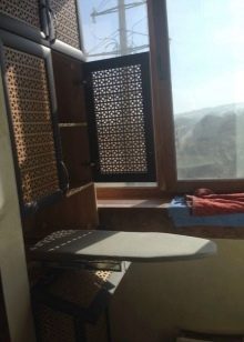 As a rule, the entrance to such a balcony is made in the form of a small arch, the window adjacent to it is masked, turning it into a wall. Thus, the workshop will be hidden from view. The balcony door can be replaced with a curtain made of lightweight material.
