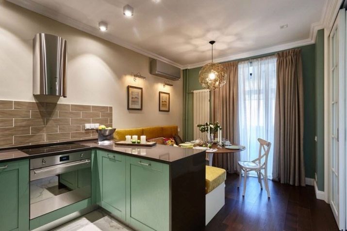 In terms of cleaning and cooking, U-shaped kitchens are considered as comfortable as possible, because on them everything is within a few steps, especially if all the equipment is built-in. L-shaped kitchens are less convenient for rooms combined with the living room, however, and they are no less in demand. Such kitchens look very compact, while they are versatile and can contain everything you need.