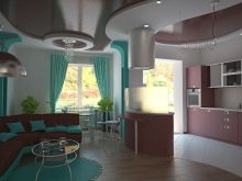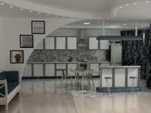To make the kitchen-studio look stylish and at the same time functionally convenient, the issue of its layout should be approached thoroughly. Designing allows you to understand how to better combine rooms, select and arrange furniture, arrange ceiling space, beat out the lack of lighting, choose a color scheme, make rational use of every centimeter of available floor space. A lot depends on its geometry, for example, a room under a kitchen-studio can be: