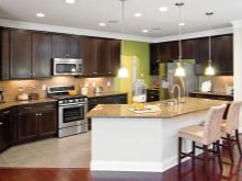 Kitchen furniture can be plain or two-tone. If you withstand the entire interior in three or four colors, you get a perfectly balanced color scheme. If desired, you can choose a set with a light top and a dark bottom, different colors of the facades, through which you can create a spectacular accent in the interior of the kitchen space. In the guest space it is better to arrange upholstered furniture: a sofa, a couple of armchairs and a coffee table.