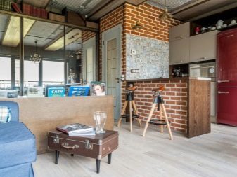 - You can beat every structural protrusion of the room, and in particular, use non-standard types of alignment. For example, in the place of combination with the loggia, you can arrange a bar table.