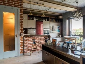 Retro characteristic mottled strokesand therefore in the interior of such a studio must be accents in the form of posters or photo wallpapers. In this way, you can designate a lunch group or relaxation area.
