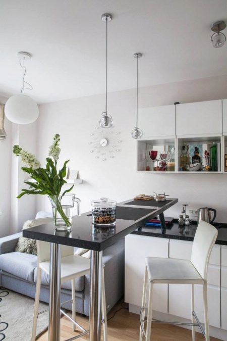 The studio layout of the apartment has many attractive sides. However, in order for the interior to look holistic and not detract from the functionality of the room, you have to think about the arrangement of each individual functional area. In the article we will consider how to organize a kitchen, outlining the nuances of its layout and design.