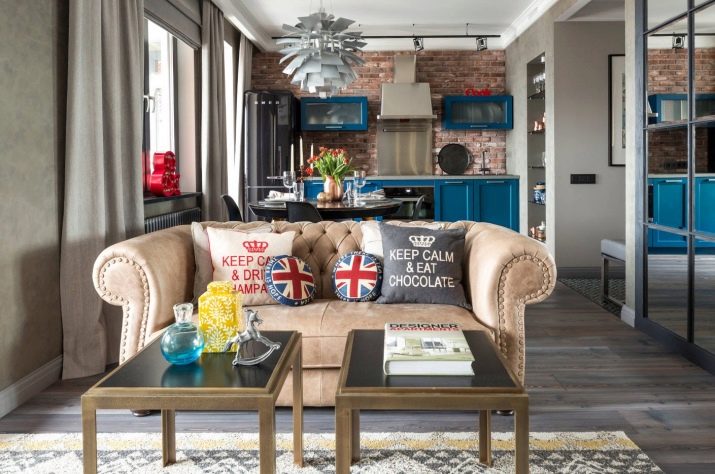 If we talk about the style of the loft, beloved today, it is important to choose expensive furniture and create in space a feeling of being in a slightly inhabited industrial facility. These are brick or concrete walls, necessarily ceilings with exposed communications, creative-looking lamps (up to street lamps). Against the background of all this, the furniture of every corner should look status. The curtain on the windows should not be at all, the windows themselves should be large or panoramic.
