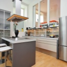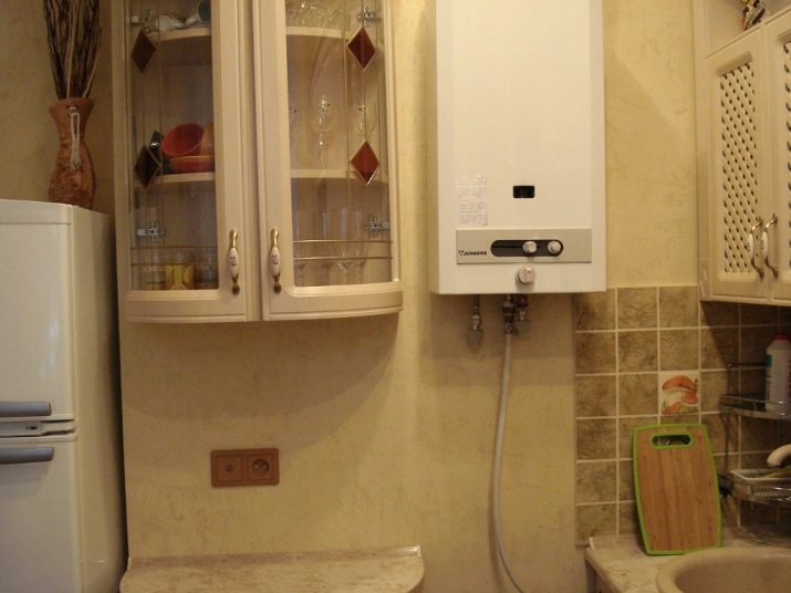 If the area of the kitchen is small in size, and there is still a geyser installed in it, then placing a refrigerator can be an even bigger problem. In this case, it is necessary to carefully measure every centimeter of the area. It is important to note that the refrigeration unit, like other electrical household appliances, cannot be installed close to the column. Safety rules state that it is necessary to maintain a distance of 0.4-0.5 meters. It is also forbidden to independently transfer the column to another place, this is done only after obtaining special permission. An excellent option for a kitchen with a gas water heater will be the location of the refrigerator directly under the water heater. This is appropriate as the bottom of the column does not heat up.
