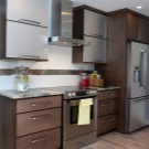 You can also integrate the refrigeration unit into furniture to create a uniform surface and visually expand the kitchen area. However, the latter option requires that the rule of the working triangle be taken into account. You can also position the refrigeration unit in the doorway. This is done as follows - the old doorway is closed, and a new door is organized in the partition wall between the kitchen and living area. This situation is especially appropriate in Khrushchev to expand the space of small kitchens.
