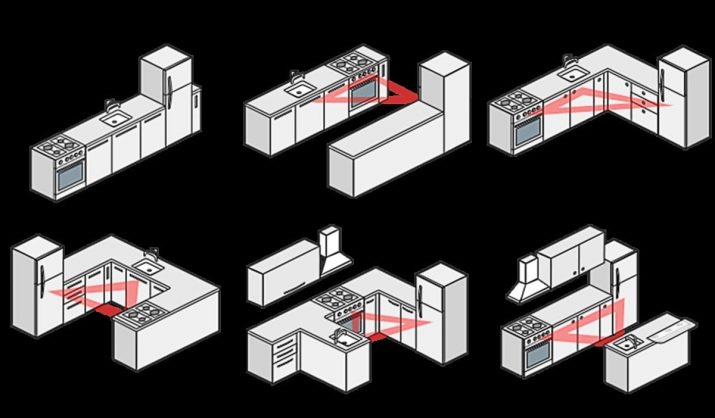 Of course, creating an ideal (isosceles) working triangle in the kitchen is quite difficult. Practice shows that other planning decisions are most often used.