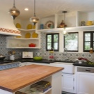 - Open shelves. It is in a private house that they look the most appropriate. Remember that even if the shelves are exclusively functional things (like cans for bulk, seasonings, etc.), they still serve as decor. Therefore, do not overdo it in the additional decorative design of the space.
