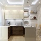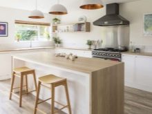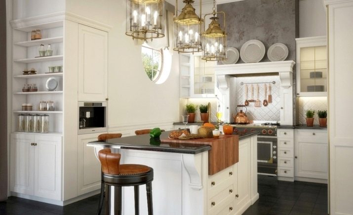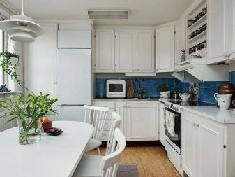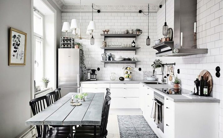 They vote the most for this option - it is suitable for a walk-in kitchen, and for a room combined with a living room, and for a laconic small kitchen on the border with a corridor or dining room.