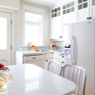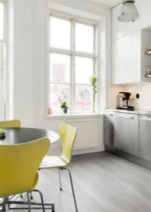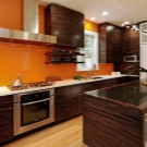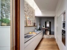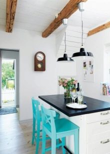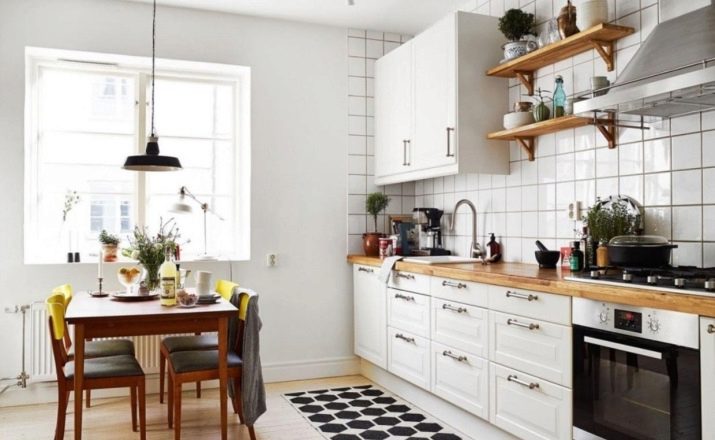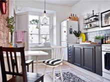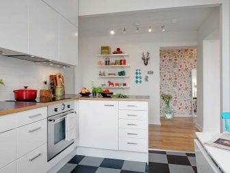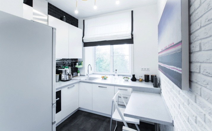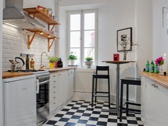 - Interior decoration. Contrast is possible, but very harmonious. The walls and ceiling can be decorated in white, but the floor can be made deliberately dark (wood). But if the kitchen is very tiny, minimize the use of dark shades in the interior.