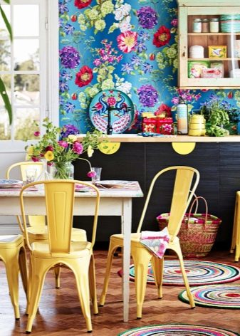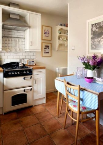 - Variegated floors and chairs, floral walls - all that is usually not advised to small rooms. Yes, visually such a design could “eat” space, but it is not an end in itself here. In such a kitchen, you want to drink tea with jam and cake as long as possible.