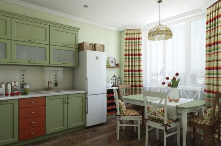 - Textile. The design of a small kitchen in a private house is difficult to imagine without textiles. If the chairs at the dining table are without upholstery, you can sew light seasonal covers on them. So the kitchen will be updated every season, changing its mood and color accents. Curtains can be limited to a translucent tulle, and you can find curtains that will be combined with the design of chairs, or with a tablecloth on the table, or even with a carpet. A small cozy rug will not hurt even a small kitchen.