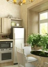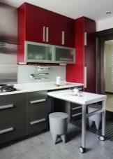 Avoid rough heavy furniture - it eats up extra space and is slow to use. A glass table and thin metal chairs look much better in a small kitchen.