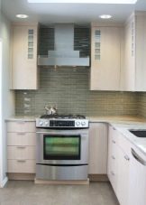 A small kitchen needs enough lighting. Light must be everywhere. Lighting can be basic, spot above the working area, above the dining room, lighting inside the cabinets. Different light sources will make the kitchen bigger.