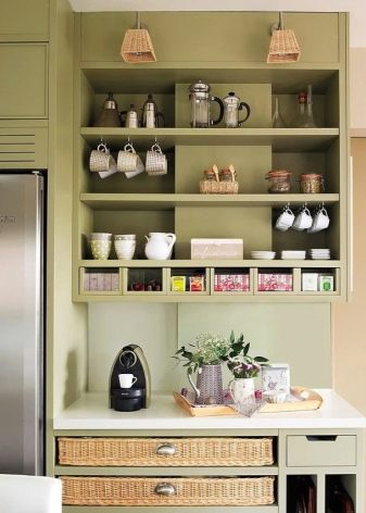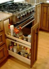 Do not stint on the quality filling of the kitchen. Good closers, storage nets, small bottles, amazing retractable nets for dishes will make the kitchen super ergonomic.