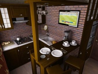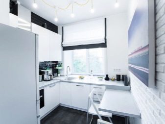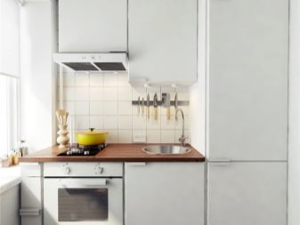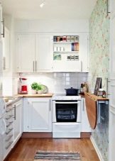 The use of large patterns, massive decorations and an abundance of decorative elements in interior design is not for a small kitchen. A simple laconic interior is much more appropriate here. The choice of filling for the functionality of the kitchen is much more important than the aesthetic component in planning a small room.