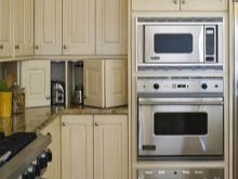 Arrangement of household appliances in a small kitchen can be difficult. A hob, an oven, a refrigerator, a microwave oven - it turns out that there is no place for the kitchen set itself. Built-in appliances will solve the problem of lack of space. It is better to place it in the kitchen in the form of a pencil case. A common layout is a built-in oven and microwave or dishwasher and oven. This will allow you to carve out additional space for roomy drawers.