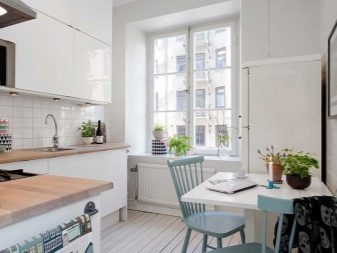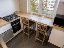 There are a number of ideas for saving space in the dining area. Extend the countertop along the window, creating a great place for a tea party. You may not need a dining area. Thus, the working surface of the kitchen will increase.