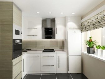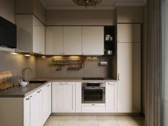 The corner sofa, in addition to seating, provides additional storage space. Volumetric drawers are usually hidden under the seats. It is possible to plan a kitchen set taking into account visual expansion with the help of design tricks.
