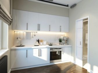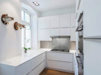 Decent decor of a small kitchen should take into account the availability of storage space, ergonomics of the workplace and adequate lighting. Ready-made factory kitchen units are not suitable for a kitchen with such a special layout. After all, even a small discrepancy in size can become an obstacle to installing a kitchen. An individual order for the manufacture of a personal kitchen is the best and affordable option.