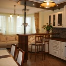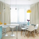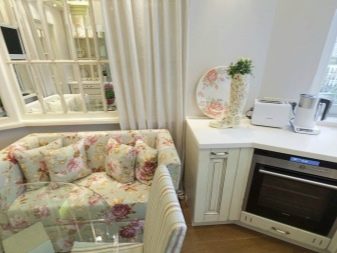 If the footage of the kitchen allows, then a rest area is added to these areas, which can easily be fenced off with a beautiful screen or a dense curtain.