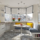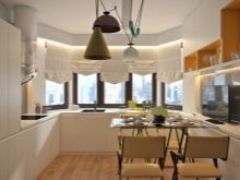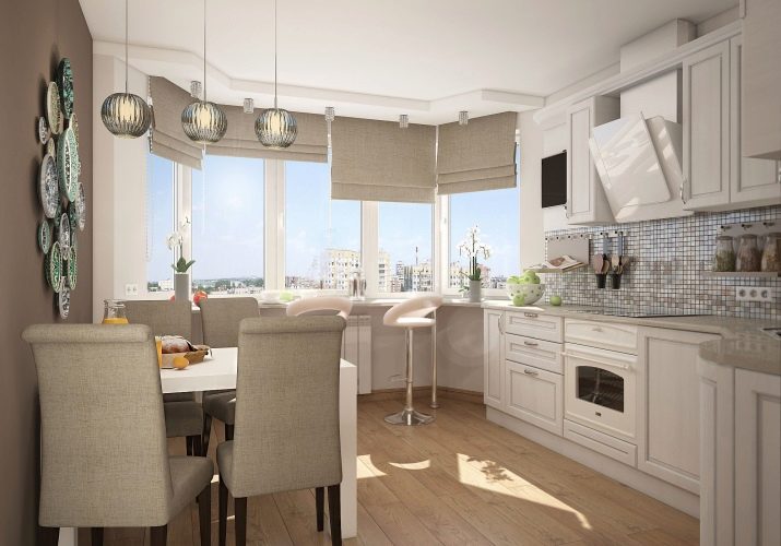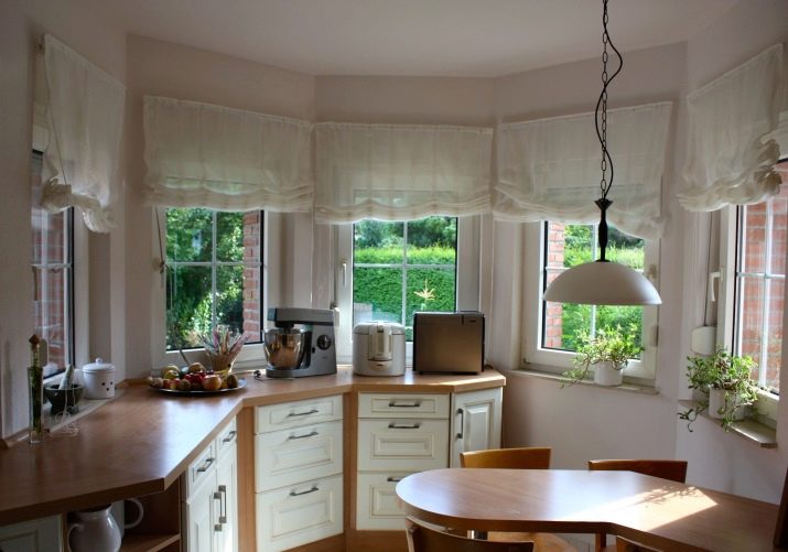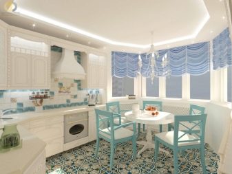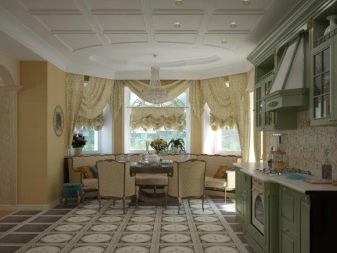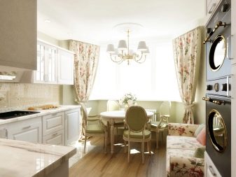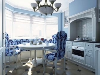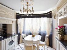 When designing or choosing a design for a kitchen with a bay window, you need to pay special attention to the style of the interior, which should harmoniously combine the geometric features of the room, furniture, color palette, structure of finishing materials, textiles.