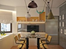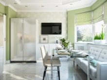 A kitchen set, a refrigerator, dining furniture, sofas, lounge chairs will perfectly fit into such a meter. It is possible to combine several rooms adjacent to the kitchen into one at once. Such a decision could be living room-kitchen. This option is best suited for multi-room apartments.