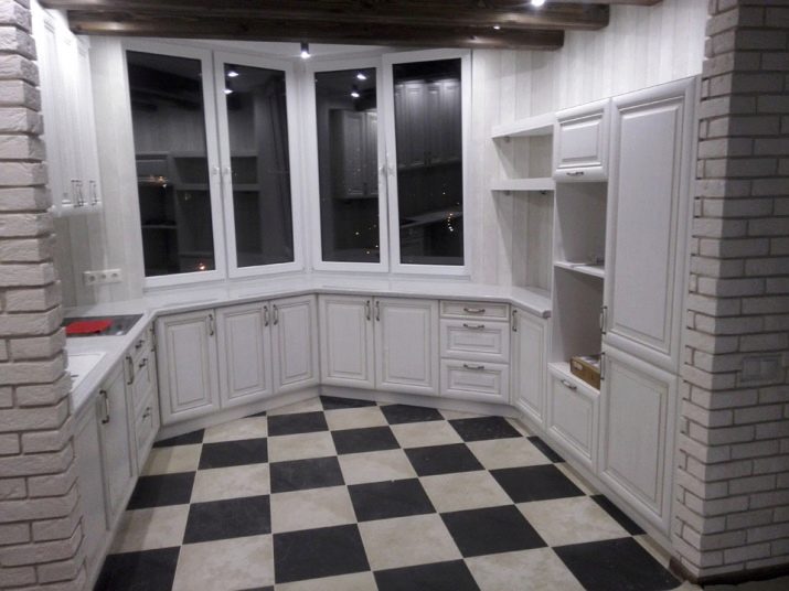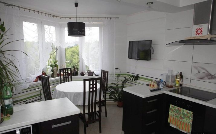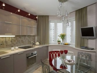 - arrangement of the working area in the bay window plane allows you to increase the free space for holding festive parties, gatherings with the whole family.