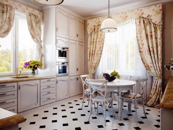 Provence - The style of provincial France, bright, cheerful, filled with colors and warmth. Color palette - all shades of white, green, lavender, lilac. Roman curtains will look great on a bay window - plain or with a floral pattern, and wooden lattice sashes on hanging cupboards for dishes will show the sophisticated taste of the owner.