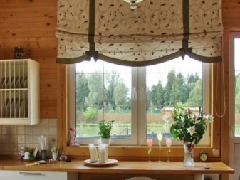 - Roman curtains - products with a straight cut, which, as a rule, do not lower below the window sill. If you want to lift them, then soft folds are formed. Due to this feature, in a slightly raised or even assembled form, they give the kitchen a cosiness, while they will not focus on themselves.
