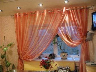 - For the kitchens of apartments located on the upper floors, it is worth choosing curtains made of light fabric.