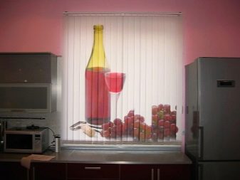 The blinds in a small kitchen are usually plain. They can be white, bright, pastel. Sometimes there are models with such a design that their upper part is painted in a special way, imitating the lambrequin on the surface of the blinds. You can do photo printing on such curtains.
