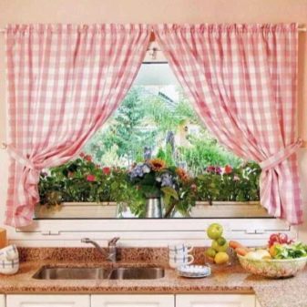 Having chosen the curtains suitable for a small kitchen, you should think about the general design of the window opening. There are several options that embody the harmony of the window of a small kitchen with other interior details.