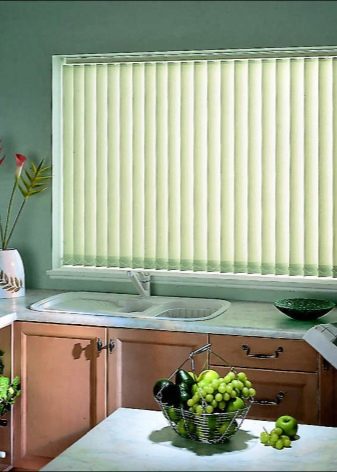 - Jalousie always remain a relevant solution for the design of small windows. Presented in the form of both horizontal and vertical structures, these products will not only be less subject to pollution, unlike fabric curtains, but also transmit an amount of light convenient for kitchen owners. The size of these products for the kitchen corresponds to the size of the window itself, and when unfolded, they completely overlap the window opening.