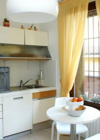 It is also worth considering the concept of the interior, which is selected for a small kitchen. Each direction corresponds to a special variety of curtains. For small kitchens, several window design options can be used to suit the style.