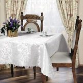 - The tablecloth must be a harmonious pair with something in the dining room. If you get a model of a certain color and this color will no longer be duplicated by anything in the room, then such a tablecloth will not look aesthetically pleasing. Therefore, when choosing a tablecloth, be sure to look at the pillows on the chair, towels and any other textile objects in tone.