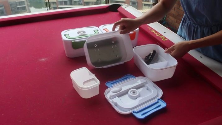 It all depends on the volume of the container and on the features of a particular model. Using such a lunch box on the road is very convenient. Since the container is airtight, you can take with you not only main dishes and salads, but also soups. Often, in many models there are small removable compartments that are convenient to use for storing lettuce and remove them from the container during heating.