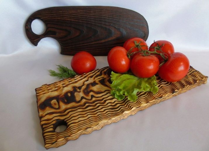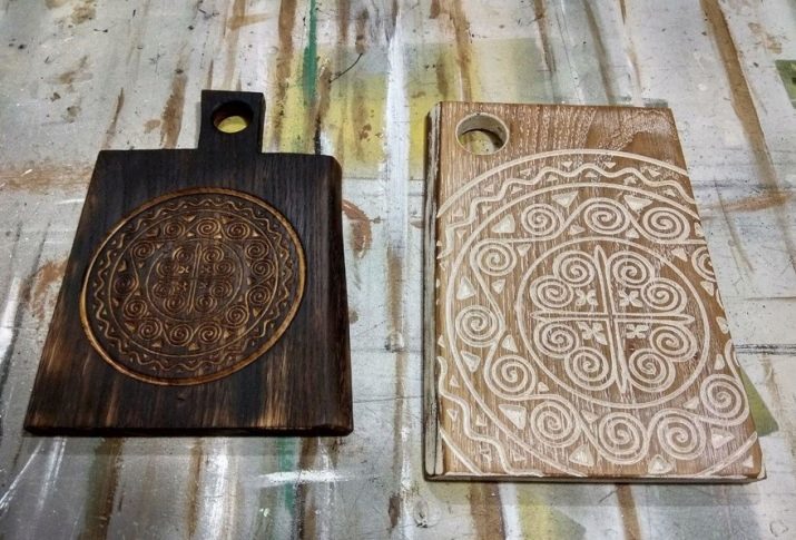 Beautiful original boards with a pattern are usually used to decorate the interior. If you cut on them, then only on the side where there is no picture. Carved boards are used in the same way, and it is better to use them for cutting dry products in order to minimize contact of the product with moisture.