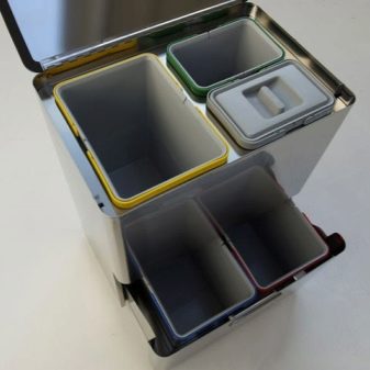 What to choose for your home in the kitchen? A better choice would be three separate containers. The combined solutions are not very suitable for home design, and less garbage is placed there.