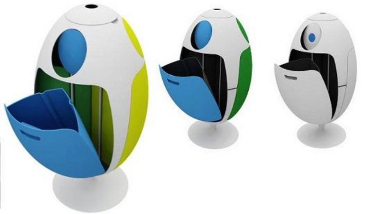 A designer based in Italy created an interesting garbage collection solution. This unit looks like an egg that opens on three sides. Of course, this is convenient. Such an egg, not only It does not allow the spread of odors, but also takes up quite a bit of space in space. That is why it is both convenient and beautiful, and very environmentally friendly at the same time. In addition, the design decision itself is very beautiful.