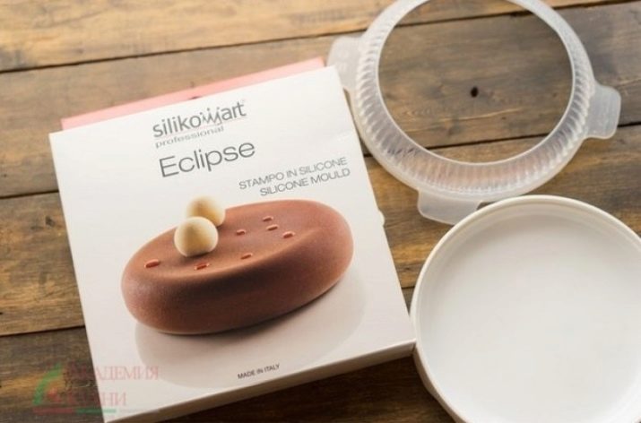 - The ideal form for cakes is rightly called Silikomart Eclipse made in Italy. This is a round 3D volumetric shape, the diameter of which is 18 cm. A flange ring with a height of 45 mm is attached to it. This is the optimal configuration and size for making mousse cakes and desserts, jellied meat, jelly and biscuit, since any dish looks non-trivial - in the form of an ellipse.