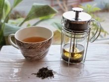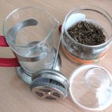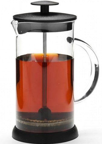 French press - a glass container with a handle for brewing tea, made in the shape of a cylinder. The container comes with a domed metal cover, which ends with a press in the form of a sieve or a metal plunger (piston).