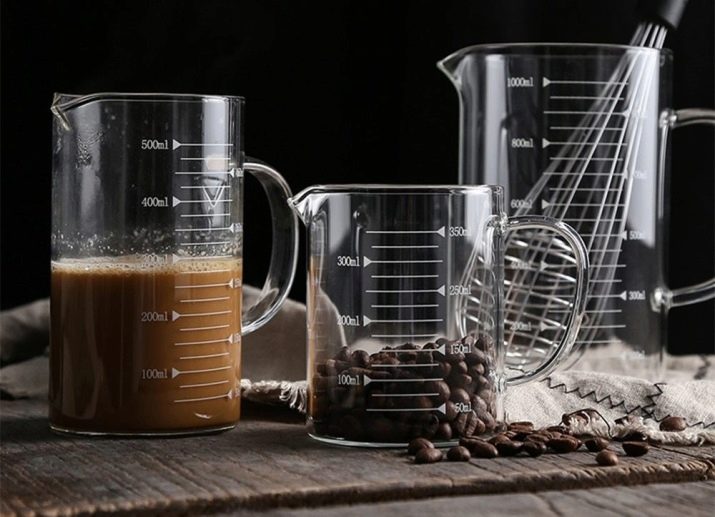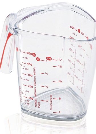 In addition, measuring devices usually have a small spout-gutter, which, after counting, will help to neatly pour or transfer the measured substances from a glass into another dish.