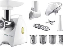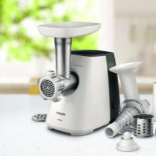 For example, the listed types of meat grinders work in an identical way, the main components are made of the same material - stainless steel, the body of the electric appliance is plastic, there is a necessary minimum of additional nozzles that are used to make sausages and other delicacies. Despite the simplicity of the device, there are many manufacturers today, so there are a large number of types and forms of accessories.