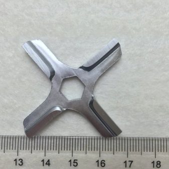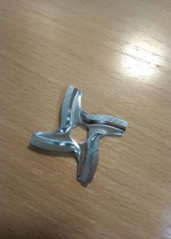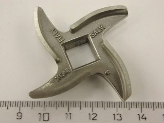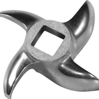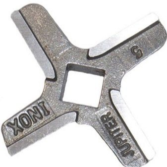 The meat grinder knife is characterized by various modifications. A popular variety is with four cutting blades. Three- and two-blade cutting parts are also available, but are less common. Knives for an old manual meat grinder differ in their workmanship. For example, now this item is made of soft stainless steel. Knives used to be made of high-carbon strong tool steel.